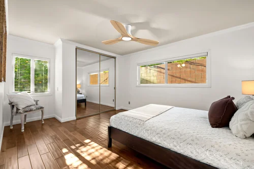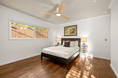 A home like this--neither a time capsule/renovation trap, nor a questionable flip--is a rarity. The home is well-maintained, with such features as real hardwood floors, copper plumbing, and dual pane windows. These are supplemented by brand new interior paint, new lighting, and new landscaping with working irrigation. An unusual feature is the added powder room next to the entrance. The main floor consists of a large living room/family room (alternately, living/formal dining), and a large kitchen/dining area (alternately, kitchen/ family room). Upstairs are two junior bedrooms, full bath, and master suite, while downstairs is a second suite opening up onto the yard.